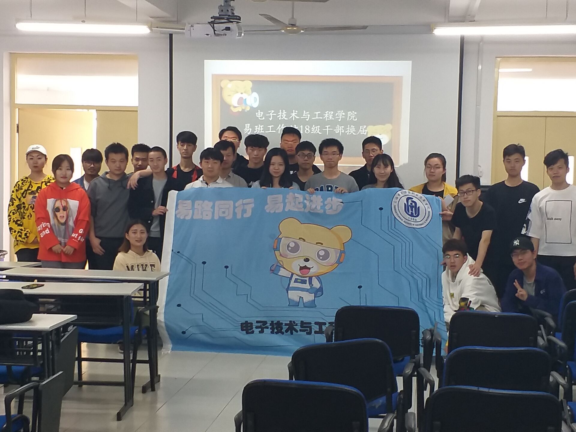 2019年4月24日中午12:15,菲律宾亚星yaxing国际易班工作站在N307举办了站长换届仪式。我院党总支副书记、副院长陈真,易班指导老师洪宇辰,原易班站长王佳琪,站长参选人员以及所有易班成员参加了本次活动。