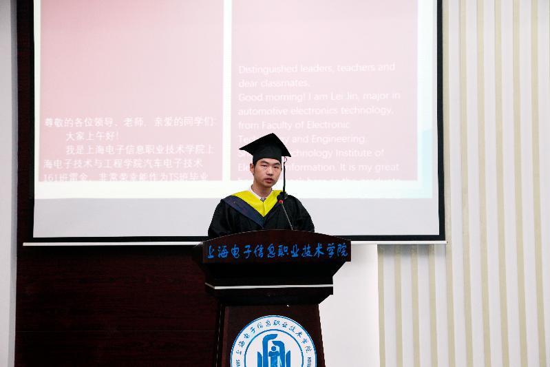 我是上海电子信息职业技术学院上海菲律宾亚星yaxing国际汽车电子技术161班雷金,非常荣幸能作为TS班毕业生代表在此发言。对于我们来说,今天是极其特殊的一天,因为过了今天,我们的大学生活将正式划上一个圆满的句号。我们将告别朝夕相处的同学,告别和蔼可亲的老师,告别辛勤培育我们的母校,翻开人生新的篇章。在这里,请允许我代表2019届TS班全体毕业生向我们辛勤劳动、无私奉献的领导和老师们,表示最衷心的感谢和最崇高的敬意。