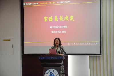 一曲《青春纪念册》拉开了毕业典礼的序幕。会上,学院党总支书记杨莹宣读表彰决定,号召毕业生们珍惜荣誉、谦虚谨慎,自觉肩负起建设祖国、服务社会的历史使命;学院副院长李军锋,党总支副书记、副院长陈真为2019年上海市优秀毕业生、学校优秀毕业生颁发荣誉证书;国家奖学金获得者潘侠和上海市奖学金获得者黄庆峰作为优秀毕业生代表发言;学院微电子系主任葛羽屏、在校生代表孙振宇分别作为师生代表向毕业生致祝福词。在即将离校之际,由毕业生代表滕松领誓,电子学院全体毕业生重温校训,用思想坚定自己的人生步伐,用智慧燃亮信仰之炬。