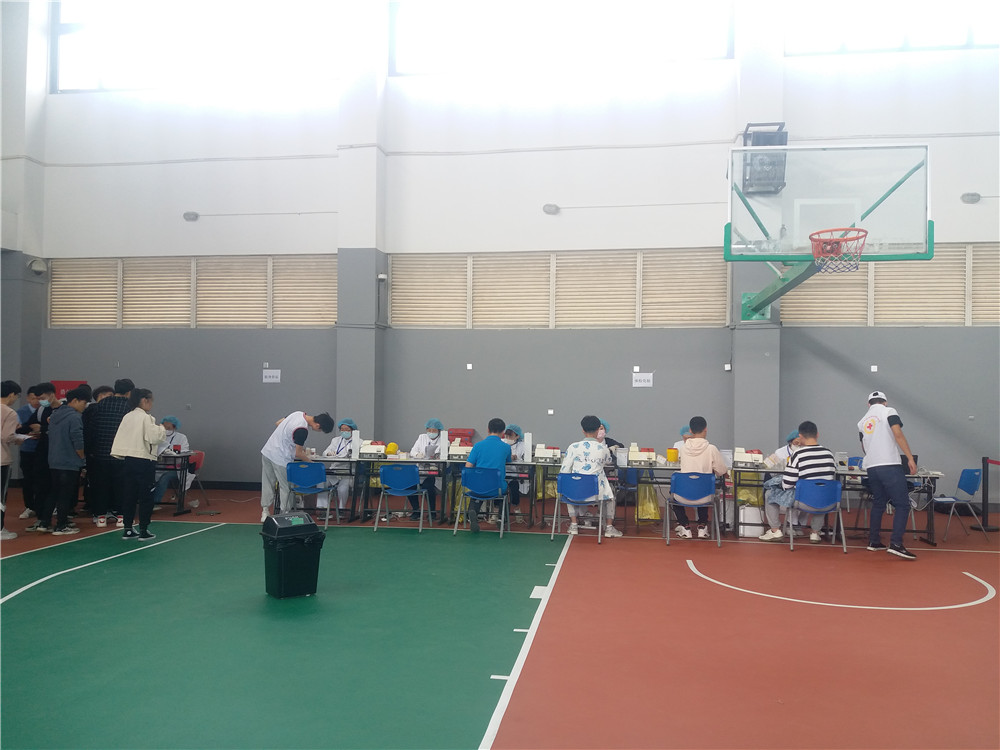 在献血现场,同学们在血站工作人员和志愿者的指导下认真填写献血登记表,并依次完成血压测量、抽血化验,等待合格后献血。同学们勇敢地伸出爱的臂膀,用奉献和爱心换来他人生命的延续和新生,参与人数高达100余人。